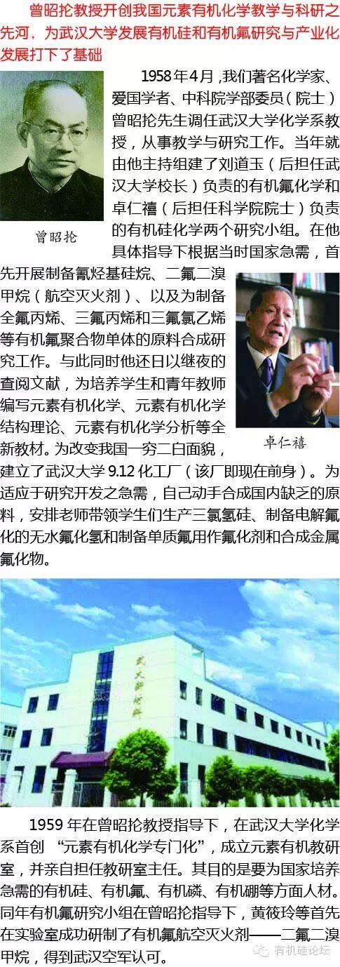 (以上文字内容节选至2014版中国硅产业年鉴) 今年适逢晨光研究院成立50周年庆,希望有机硅行业的摇篮发展越来越好,也祝愿跟随着中国有机硅行业成长起来的前辈们身体健康,致敬于他们对于行业发展无比热忱的付出和执着。 有机硅论坛在1月底曾经推送过一篇前辈关于晨光50周年的纪念文章,链接地址 http://www.chinasilicon.net/forum.php?mod=viewthread&tid=44418#rd&sukey=cbbc36a2500a2e6c5c67525620808eff9c9c96a7b8d6963df7ab94ce267a17f0f805bcdb73b91558d5f185acf6ec0779 |
