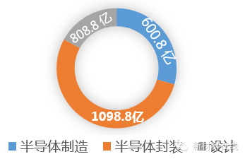 据中国半导体工业协会(CSIA)的数据,2013年中国半导体销售额2408亿元,同比增长11.6%,其中设计808.8亿元,增长30.1%;制造600.8亿元,增长19.9%;封装1098.8亿元,增长6.1%,而进口半导体芯片为2313亿美元。