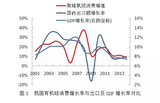 我国有机硅行业受国民经济发展的影响很大,如图3。在当前的宏观经济形势下,有机硅行业如何调结构、促发展,也成为行业各方共同关注的课题。